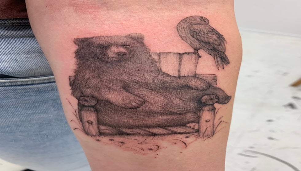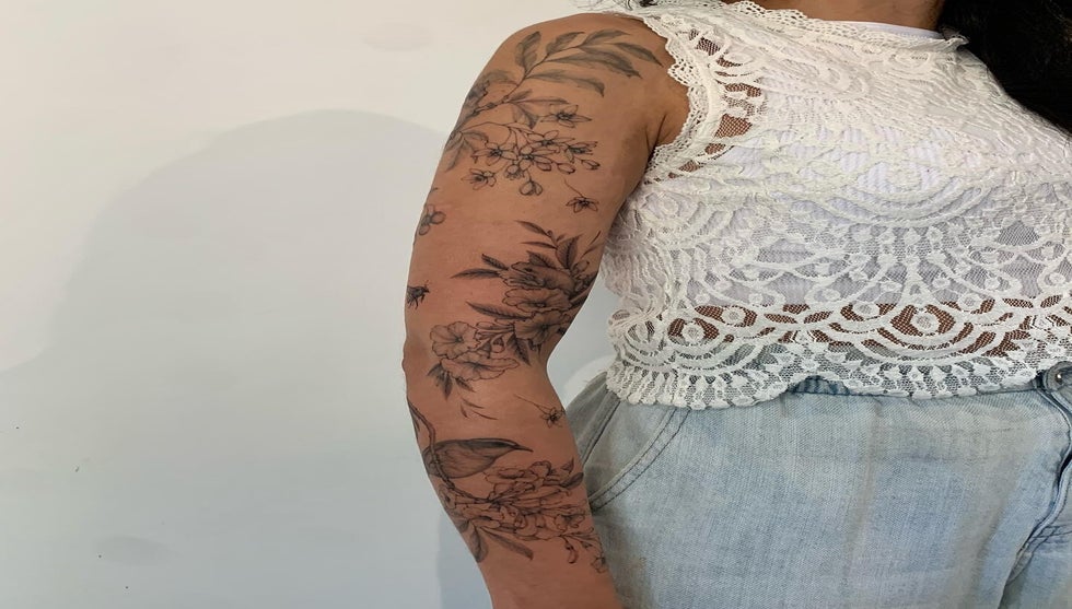 Katy is currently tattooing 3 to 4 days a week, capturing that healthy balance of work life and family life.